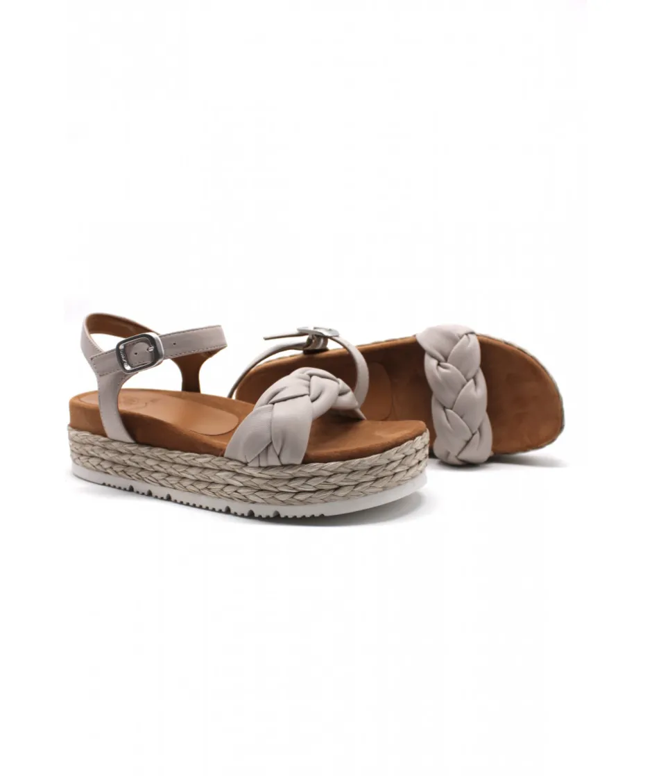 Jolie sandale sur la nouvelle semelle légère et confortable de la maison espagnole UNISA. Le modèle COPLA se révèle dans un cuir écru, couleur douce et tendance de cette année. La bride avant en cuir moussé tressé offre beaucoup d’élégance et de féminité à cette sandale confortable.