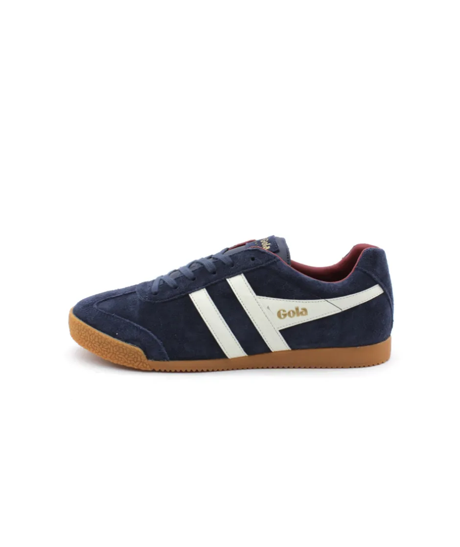 À la recherche d’une jolie basket tendance et originale ? La nouvelle GOLA est faite pour vous avec ce modèle de sneaker HARRIER SUEDE dans son coloris en cuir nubuck bleu marine. Le must-have des baskets branchées pour cette saison au look sport / chic équipées de bandes blanches sur le côté. Sur une semelle en caoutchouc marron, cette chaussure pour hommes vous charmera forcément par sa légèreté et sa souplesse. Ses lacets quant-à eux vous apporterons beaucoup de maintien. N’attendez plus, ce sont les baskets modernes qu’il vous manquait !