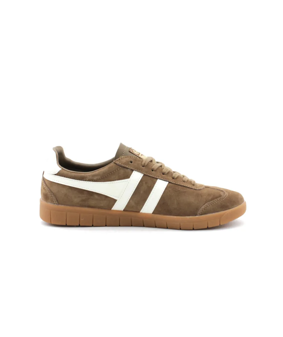 À la recherche d’une jolie basket tendance et originale ? La nouvelle GOLA est faite pour vous avec ce modèle de sneaker HURRICANE SUEDE dans son coloris en cuir velours tabac. Le must-have des baskets branchées pour cette saison au look sport / chic équipées de bandes et d’un contrefort blanc.