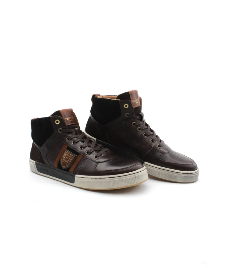 Voici la nouvelle création de la maison Pantofola D’Oro avec sa sneakers montante en cuir marron foncé. La FREDERICO UOMO MID est la basket parfaite pour tout les jours… Souple, confortable et moderne, elle saura s’adapter à toutes les situations. On aime le mélange de couleur et les lignes variées de la chaussure, pour un look original. L’écusson de la marque est présent sur le côté de la chaussure ainsi qu’un rappel sur la languette.
