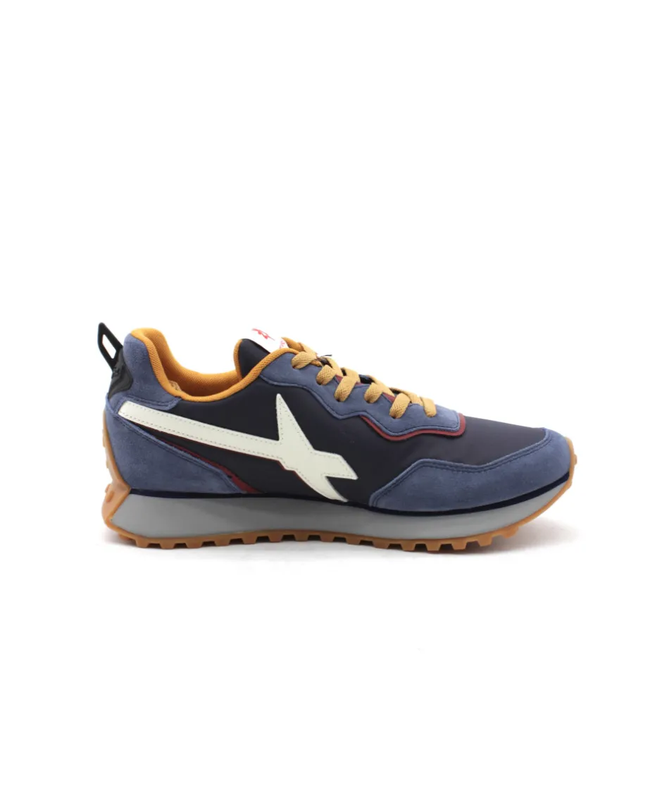 W6YZ propose sa running dans une nouvelle déclinaison qui séduira tous les fans de sneakers. La version JET-M 1C50 bien connue maintenant, s’habille d’un cuir et textile couleur bleu marine accompagné de détails orange ocre que l’on retrouve à l’intérieur de la basket. Toujours dans son esprit décalé, W6YZ lui donne un look pep’s avec sa semelle grise et son logo blanc !