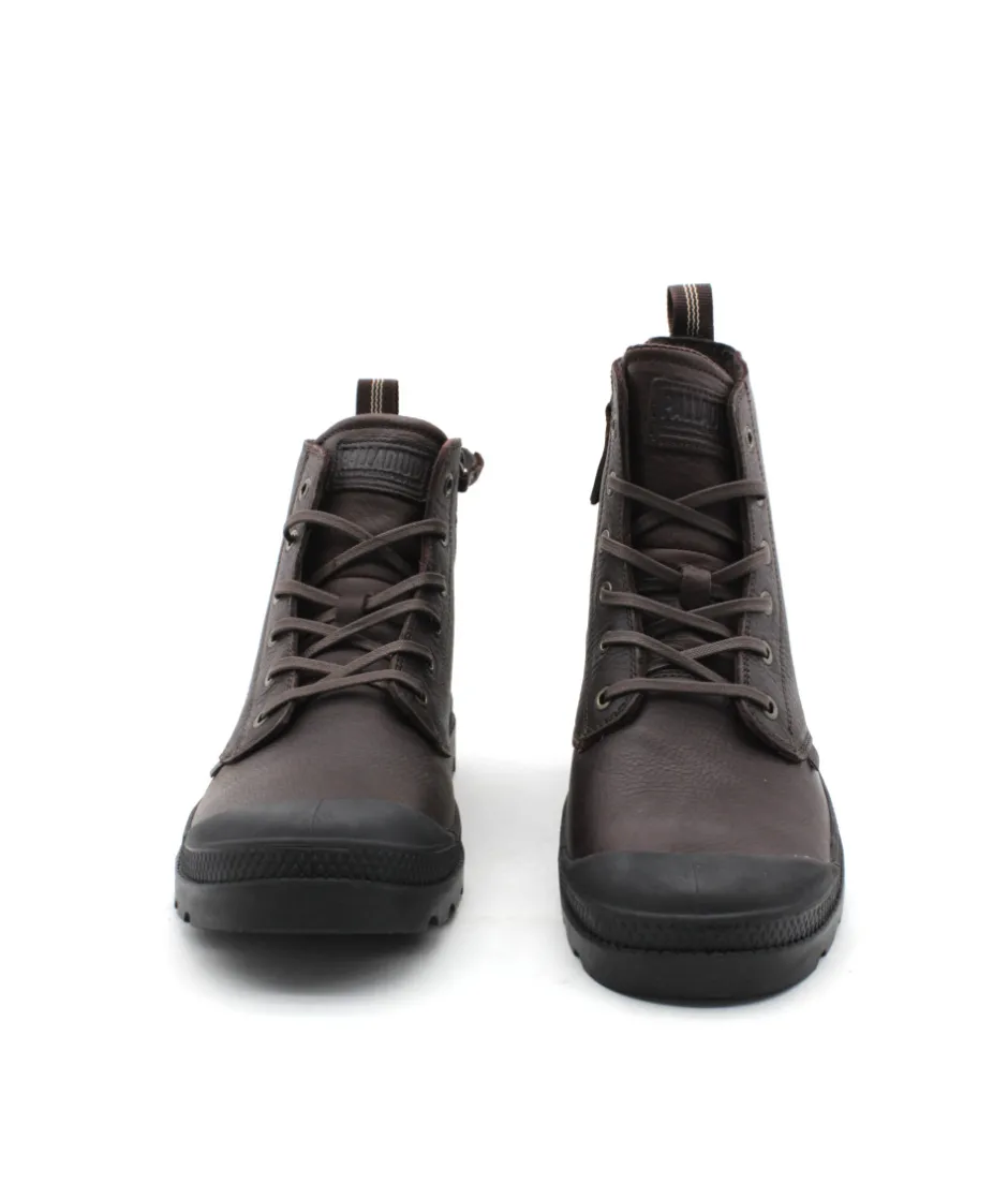 Nouvelle version pour la forme très connue PAMPA de chez Palladium. Cette fois la version PAMPA ZIP LTH se décline en cuir marron foncé grainé et arbore fièrement les logos de la marque sur la languette, les côtés et le talon ! On aime la sobriété de cette chaussure qui bénéficie d’un zip latéral pour plus de praticité à l’enfilage. N’attendez plus pour profitez de sa semelle en EVA ultra-légère !